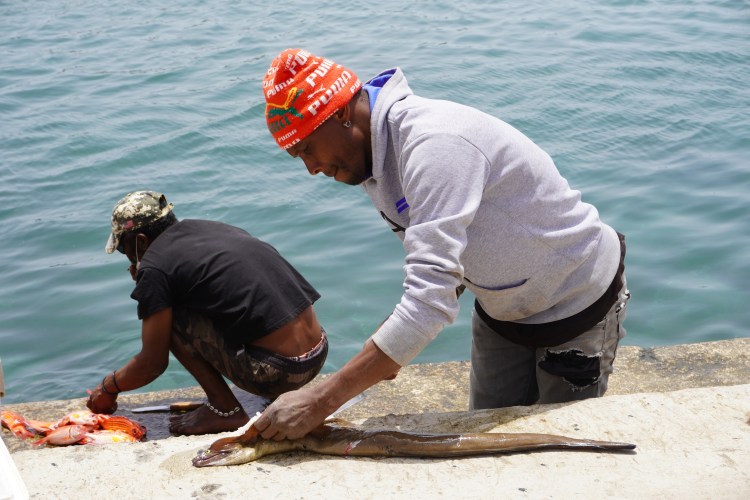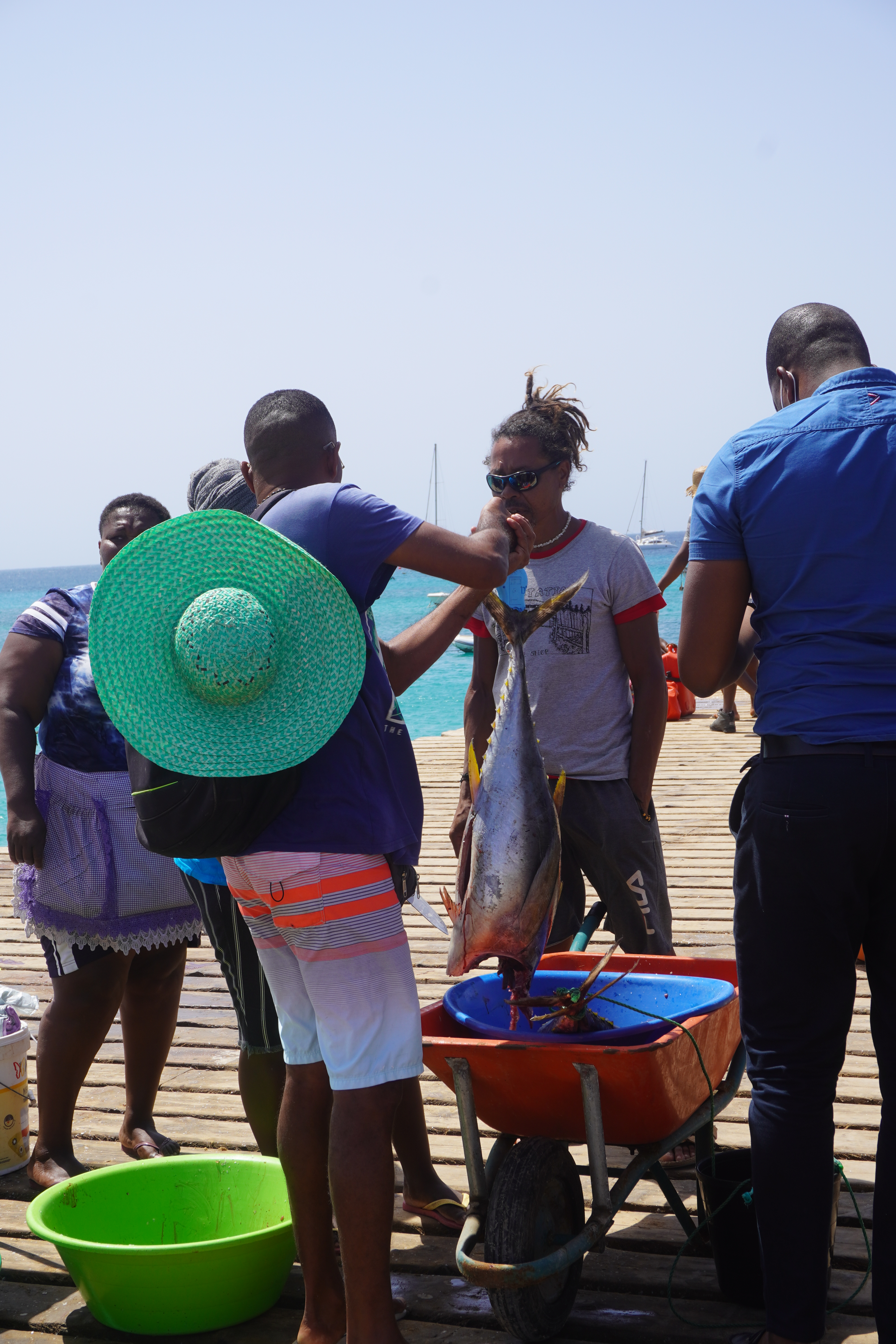 Am Montag-Morgen holte uns Zé ab. Ein liebevolles einheimisches Lexikon führte uns um die Insel. Aber zuerst machten wir beim Onkel Doktor halt. Ja der liebe Corona-Schnelltest stand als erstes auf dem Tagesprogramm. Negativo – wie schön. Und es ging weiter. Er wusste uns allerhand über die Insel und dessen Bewohner zu berichten. Zuerst steuerten wir die zweitgrösste Stadt «Assomada» auf der Insel Santiago an. Dort ging es in die Markthalle wo wieder buntes Treiben herrschte. Aber dort sahen wir nicht nur Früchte, Gemüse, Gewürze und dergleichen. Es hat unter Anderem einen ausgiebigen Fischmarkt und das Huhn kannst man lebendig oder bereits «gerupft» kaufen. Für uns «schiggimiggi» Schweizer ungewohnte Düfte. Aber auf alle Fälle lohnenswert – zwei, drei Mal tief Auszuatmen und an etwas anderes zu denken.