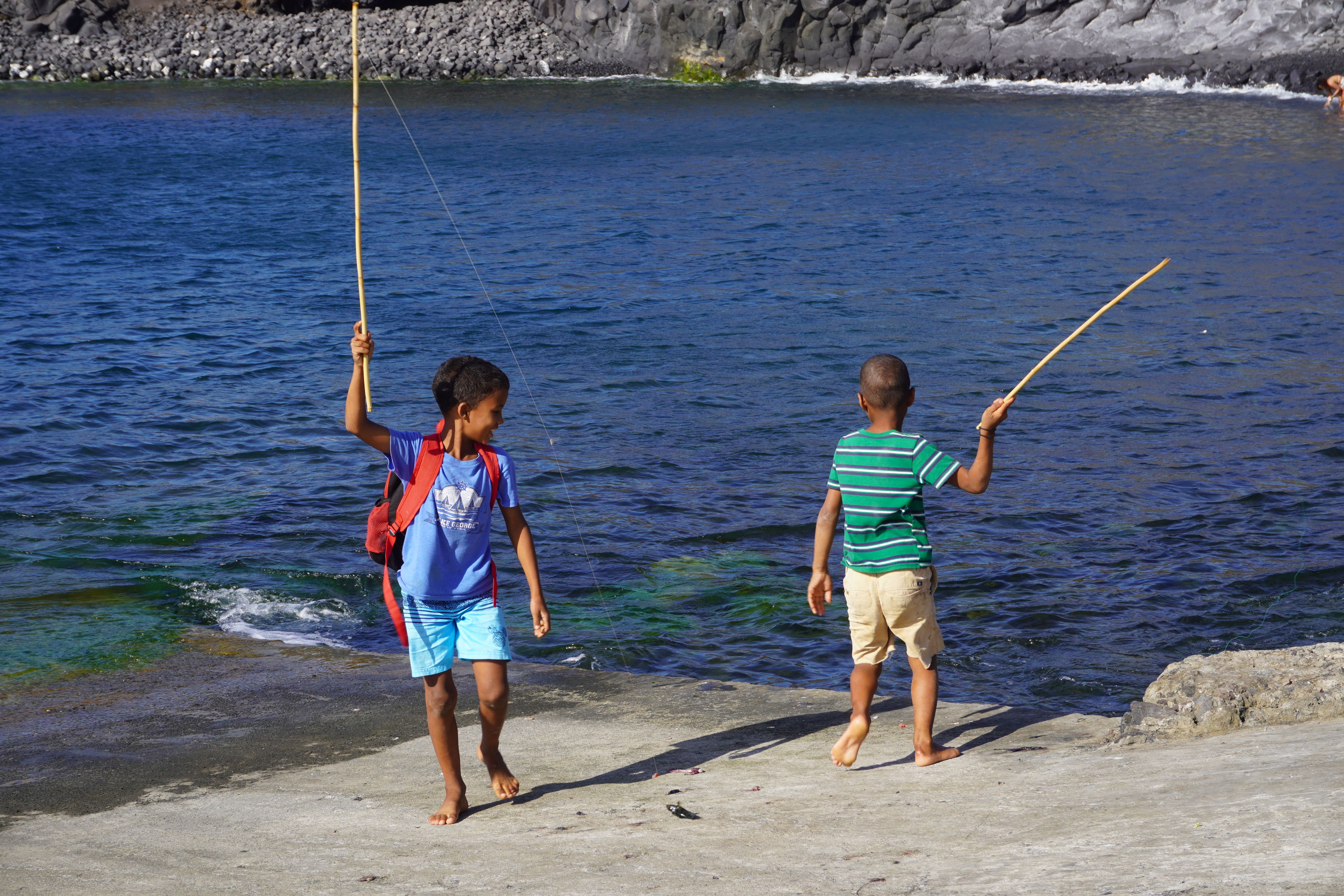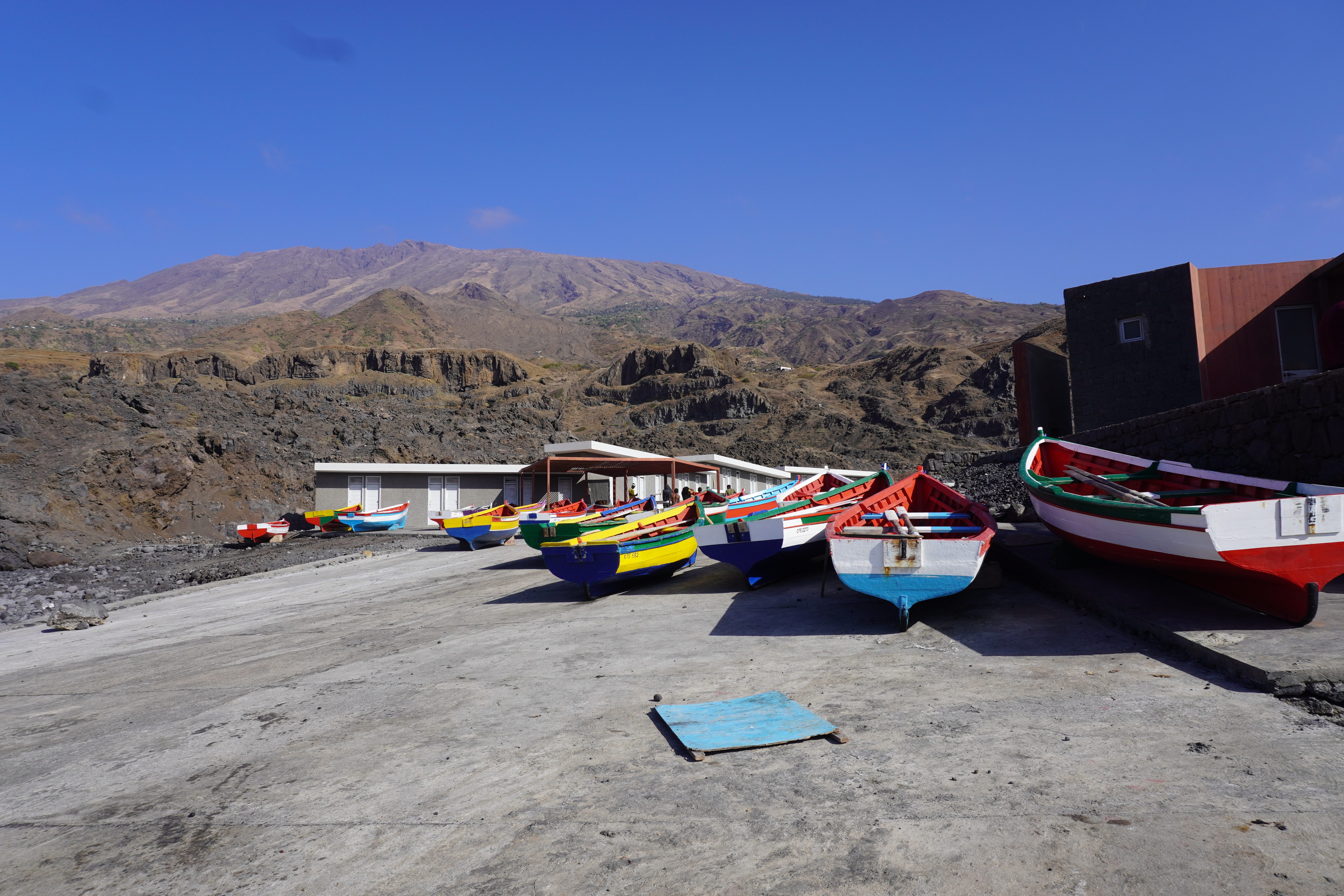 Wir nahmen die Fahrt Richtung «Tarrafal» auf. Dieser Ort ist vor allem bei Tauchern beliebt. Auch der Palmenstrand mit den buntbemalten Fischerbooten ist eine Augenweide. Nach einer Mittagspause ging es via Ost-Seite nach Hause. Zé legte noch einen Halt bei einer Kokosnuss-Verkäuferin direkt am Strassenrand ein. Eine nette Erfrischung und ein schmackhaftes «Zvieri». Viele traditionelle Häuser, Bauernhöfe oder ein Mix aus beidem machte uns nachdenklich. Das einfache Leben, welches geführt wird, ist beeindruckend und für uns Westliche nur nachvollziehbar, wenn man es mit eigenen Augen sieht. Wir ziehen echt den Hut – mit welcher Lebensfreude sie durchs Leben gehen.