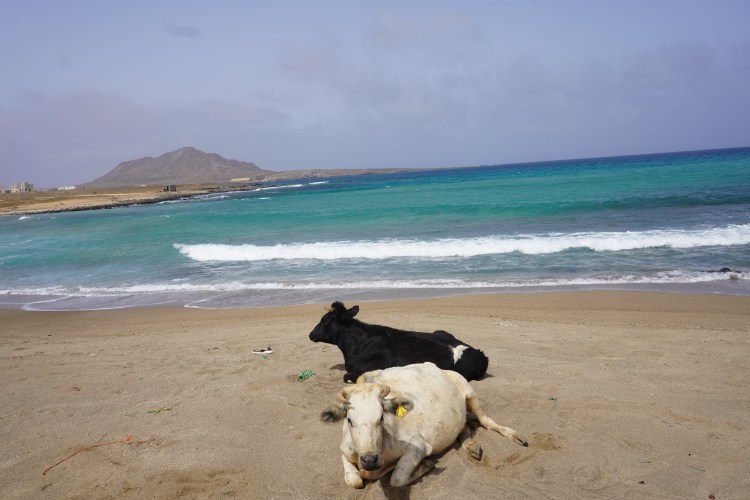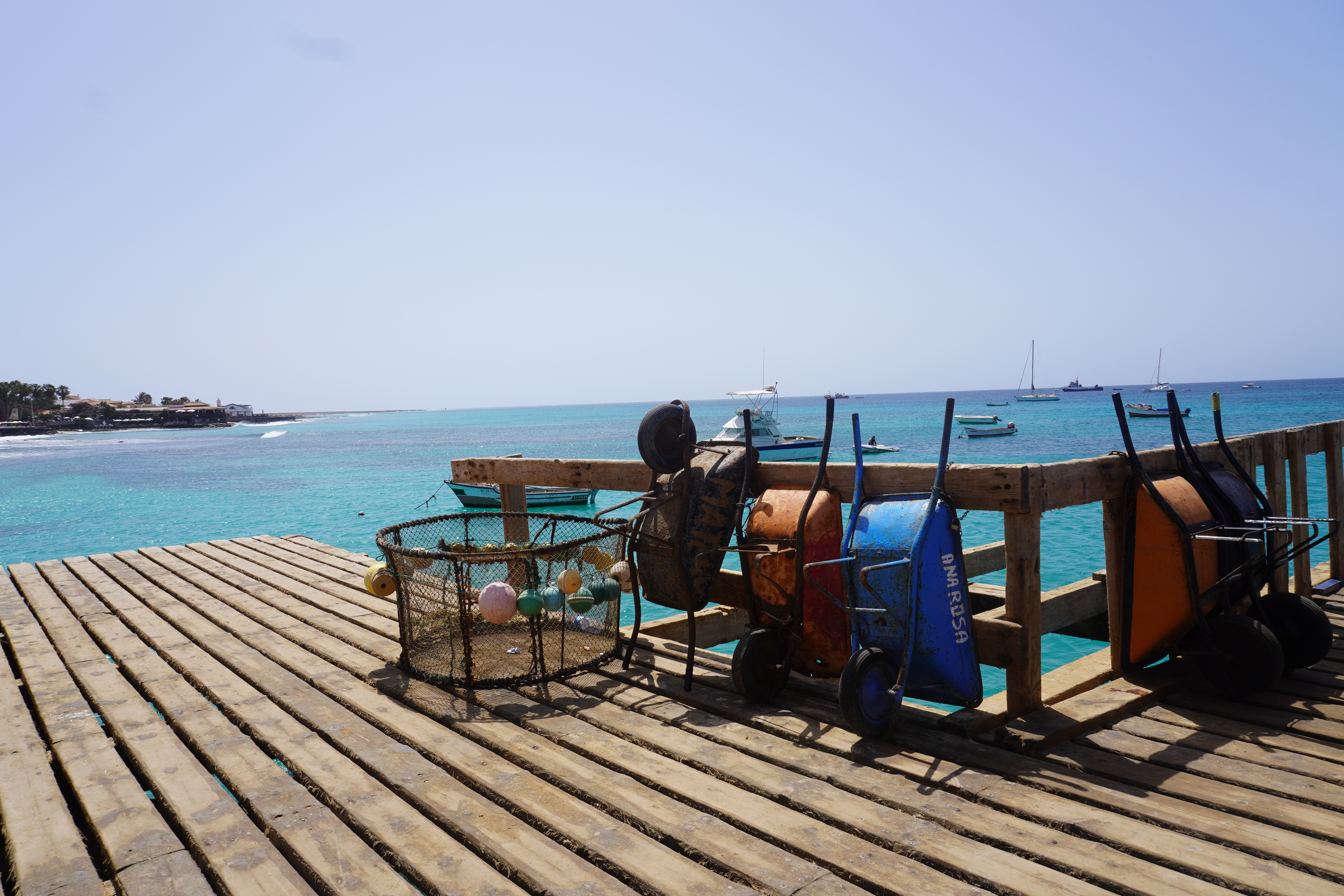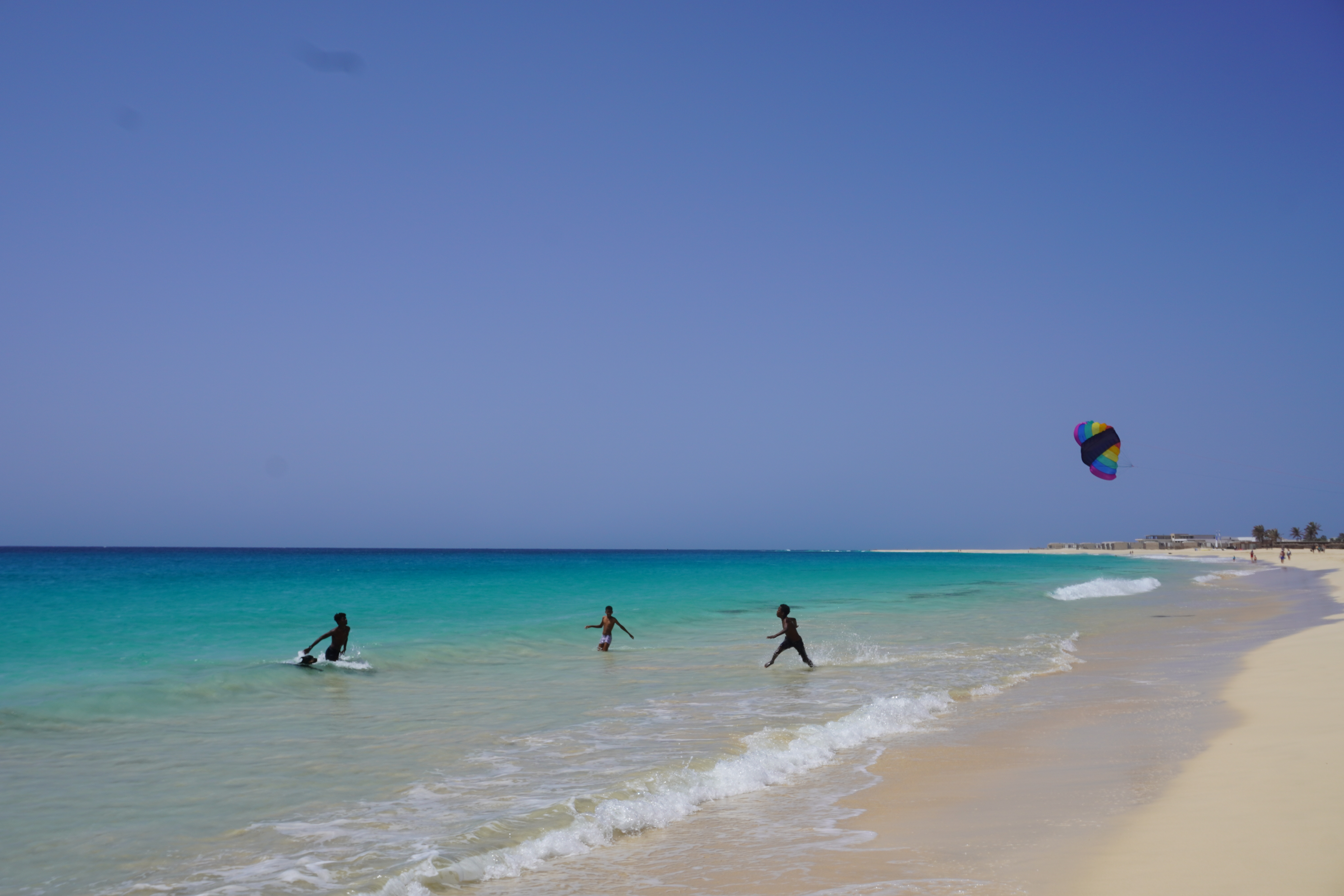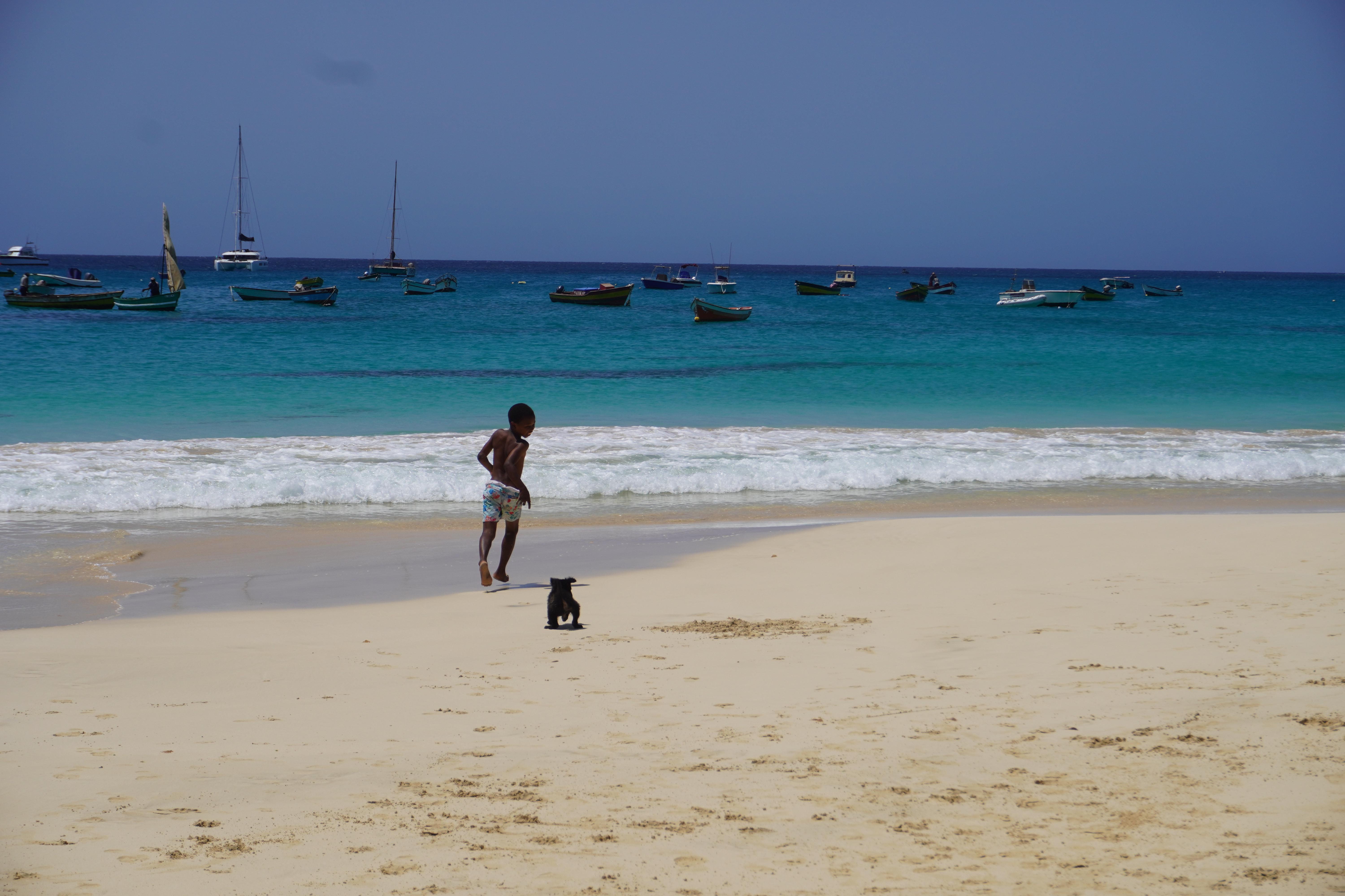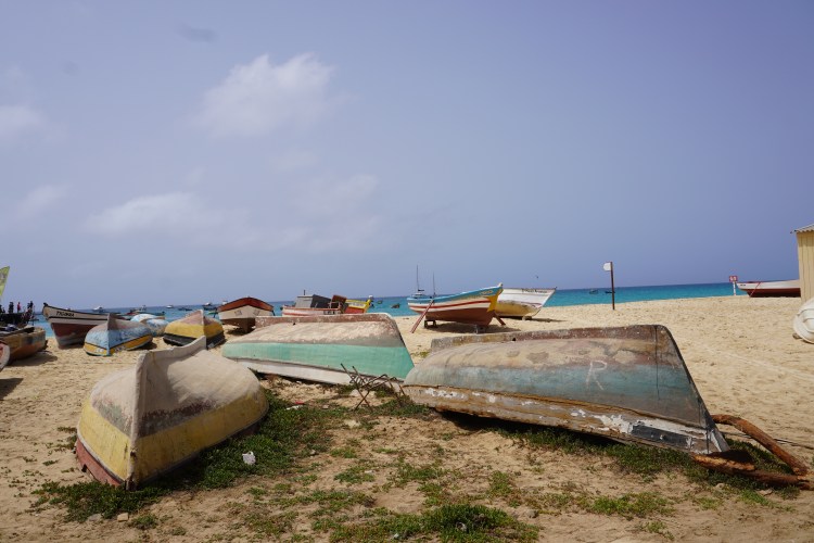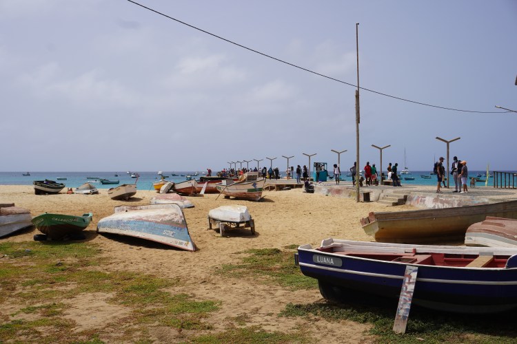 Kaum gelandet, sieht und hört man den Slogan der Cabo Verder überall. NO STRESS. Daran angepasst haben wir uns schnell. Das liegt wohl daran, dass man gar nicht «jufeln» kann – man muss so viele schöne Sachen anschauen. Im Städtchen von «Santa Maria» hört man Musik aus den Musikboxen oder ab und an live, viele Wände sind mit Wandbemalungen geschmückt, am «Santa Maria Pier» herrscht das bunte Treiben der Fischhändler und ab und zu stösst man auf einen Strandverkäufer. Der weisse Sandstrand haut einem um. Wir konnten unser Strandtuch quer hinlegen. Für uns natürlich «legendär» – aber für die Cabo Verder, welche vorwiegend vom Tourismus leben, alles andere als schön. Die Strände sind wie leer gefegt und einen Tisch im Restaurant bekommt man mühelos – ganz ohne Reservation.