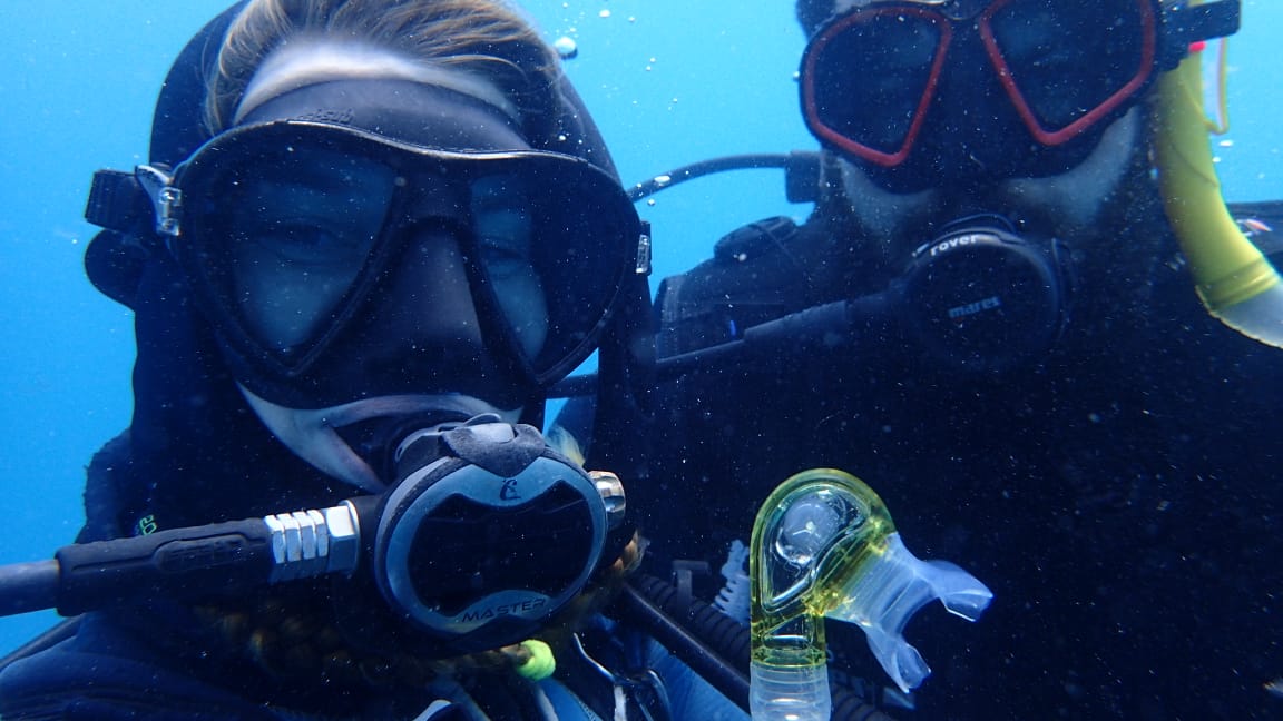 Unser zweites Appartement, das Casa Pau, lag gerade mal einen Katzensprung von der Tauchschule entfernt. Zwei Mal umfallen und «zäck», steckt Seebi im Neoprenanzug. Sieht übrigens sehr sexy aus. Wir sehen jetzt gerade, wie ihr euch das so vorstellt und schmunzelt. Ist nicht weiter schlimm, Ela musst es sich auch jeweils verkneifen. Das war natürlich sehr «gäbig», dass die Schule so einen tollen Standort hatte und schon ein gutes Argument, noch einen Tauchkurs anzuhängen. Nach dem „Open Water Diver“ packte Seebi das Fieber «dermassen», dass er sogar noch den Kurs „Deep Diving“ absolvierte. Er ist wohl der einzige Taucher weltweit, welcher auf seinem Profilbild vom Tauchausweis eine Wollmütze trägt und im Hintergrund die Schneelandschaft zu erkennen ist.