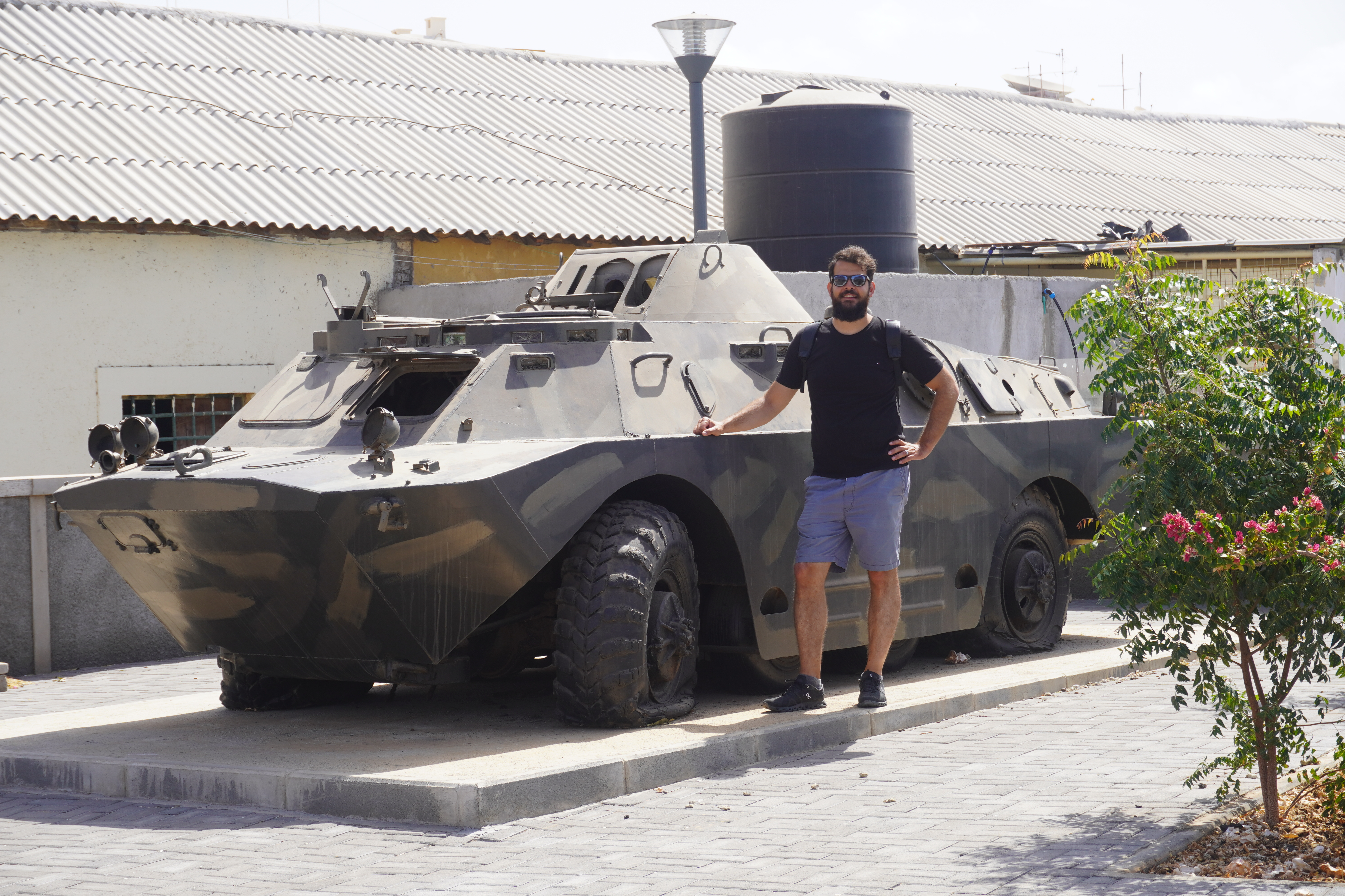 Da am Sonntag, 18. April 2021 die Wahlen stattfanden – besuchten wir den «Presidential Palace», bevor sich dort die Wahlfreudigen «Fans» versammelten. Der Palace verfügt über einen wunderschönen Park – welcher «pigobello» in Schwung gehalten wird. Unmittelbar daneben befindet sich das «Monumento de Diogo Gomes». Dieser behält zu seiner rechten einen die Übersicht auf den Hafen «Porto da Praia» und geniesst zur linken eine tolle Aussicht auf die Halbinsel «Santa Maria Islet» sowie den Leuchtturm «Farol de D. Maria Pia». Der Leuchtturm strahlt im Übrigen bei Sonnenuntergang ganz schön kitschig-romantisch. Ein paar Schritte vom Monument entfernt, findet man das Verteidigungsministerium mit dem berühmt berüchtigten Panzer davor. Um zum «Parque 5 de Julho» zu gelangen – macht man einen Spaziergang durch den «Sucupira Market». Von Matratzen, Fisch, Eiern, Handys, Unterwäsche bis hin zu Hühnern – dort kriegst du alles. Und Seebi wäre, wenn er gewollt hätte, auch Ela losgeworden. *pfui-Fingerdätsch*