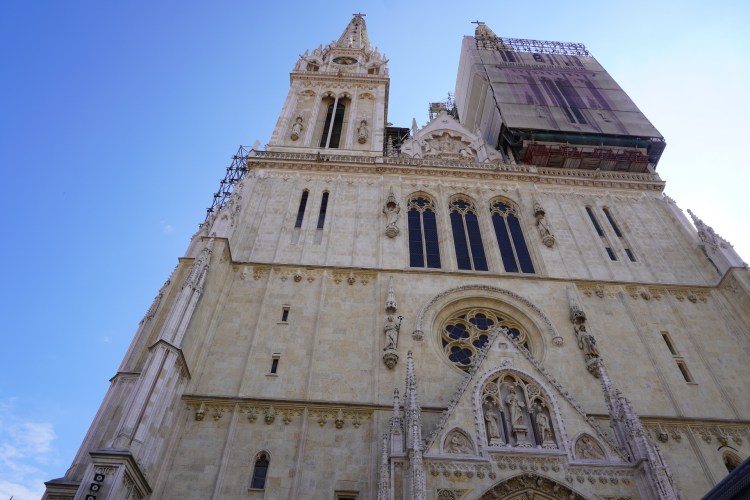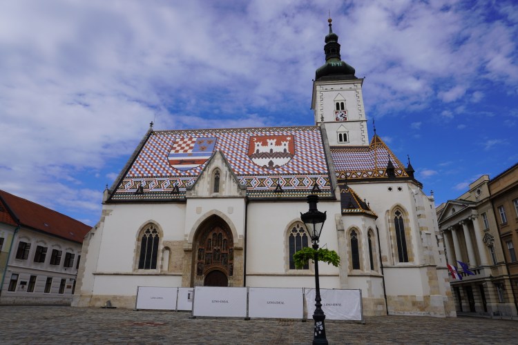 Das Steintor «Kamenita Vrata» an der Oberstadt ist ein mittelalterliches Stadttor, welches, nicht wahr, die Ober- mit der Unterstadt verbindet. 1731 zerstörte ein Grossbrand nahezu alle Holzgebäude in der Oberstadt. Das Gemälde der Jungfrau Maria im Obertor blieb jedoch wie durch ein Wunder heil. Heute steht dort eine Kapelle, wo Gläubige beten oder eine Kerze anzünden. Die Oberstadt «Gornji Grad» erreicht man mit der Standseilbahn «Uspinjača». Sie ist eine der steilsten und kürzesten Standseilbahnen der Welt. Zusammen mit dem Stadtkern «Kaptol» bildet die Oberstadt den älteren Teil Zagrebs. Auf dem «Kaptol Berg» thront die gewaltige Kathedrale «Maria Himmelfahrt». Sie wird auch als der «Dom vom Zagreb» genannt und gilt als nationales Kulturgut. Nicht zu übersehen ist der davor prägende «Madonnenbrunnen». Irgendwie waren wir immer zur richtigen Zeit am richtigen Ort. Und so kamen wir in den Genuss, zumindest einen Teil vom Wachwechsel des «Cravat Regiment», eine Ehrengarde von Zagreb, zu beobachten. Der Marsch führt von der Oberstadt zum Markusplatz – auf welchem die gleichnamige «St.-Markus-Kirche» steht. Diese mit dem aufwendig gestaltenden Dach mit seinen zwei Wappen kann man nicht übersehen.