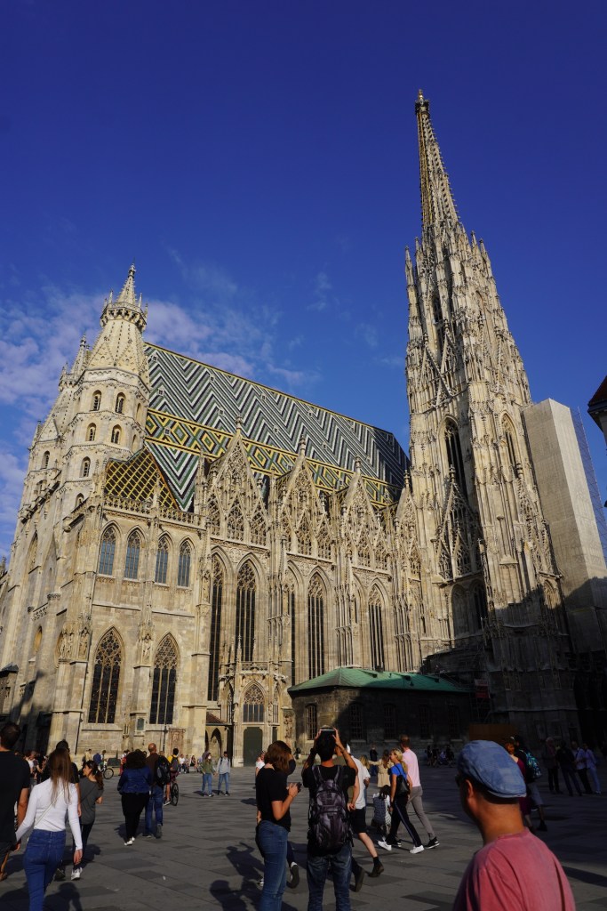 Der «Stephansdom» ist eines der Wahrzeichen der Stadt und wird von den Einheimischen liebevoll «Steffl» genannt. Der Südturm ist 136 Meter hoch und es hangen insgesamt 13 Glocken an ihm. Die «Pummerin» ist die zweitgrösste freischwingend geläutete Kirchenglocke Europas. Sehr markant sind jedoch die insgesamt 230’000 bunten, im Zickzack verlaufenden Ziegel, die das Kirchendach schmücken. Am symbol- und geschichtsträchtigen «Heldenplatz» wurden mehr als sieben Jahrhunderte lang das Habsburgerreich von der prachtvollen «Hofburg» aus regiert und seit 1945 ist sie der Amtssitz des Bundespräsidenten. Mit 24 Hektar ist er einer der grössten nichtreligiösen Gebäudekomplexe Europas. In der Hofpfarrkirche «St. Augustin» heiratete schon Kaiser Franz Joseph seine Sisi, Napoleon seine Marie Louise und noch viele andere adlige Habsburger. Um 1350 war auf dem Areal des heutigen «Lobkowitzplatz» ein Viehmarkt und Schlachtplatz für Schweine. Dieser Schweinemarkt diente im späten Mittelalter auch als Richtstätte, vor allem für Enthauptungen und Verstümmelungen. Ganz schön «grüselig» diese Vorstellung. Wer uns kennt weiss, dadurch liessen wir uns den Appetit nicht verderben – und eine «deftige» Sachertorte versüsste uns den restlichen Nachmittag.