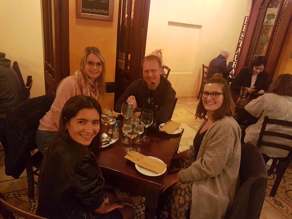 Seebi hatte noch was auf seiner Männer-Todo-Liste abzuarbeiten. 007 hat ihn persönlich gebeten, ihn endlich im Kino zu besuchen. Genau. Zum Glück gab es noch zwei weitere Männer auf diesem Planeten, die den Film noch nicht gesehen hatten. Könnten wir den Blog mit Geräuschen unterstreichen, würde es jetzt an dieser Stelle mit einem mitleidigen «oooohhh» ertönen. Und so schauten sie sich den Film gemeinsam an. Ela genoss den Abend zu Hause, es machte ihr dann «öppe» gar nichts aus, darauf zu verzichten. Nach der Verschnaufpause am Donnerstag steckte, vor allem Ela, wieder voller Ausgangsdrang. Jetzt war Seebi an der Reihe, die Wohnung zu bewachen. Mit drei anderen Schülern der EC besuchten sie das von den Lehrern angepriesene Restaurant «Ta‘ Kris». Ein Lokal, welches auf einheimische Gerichte setzt. Und wir mussten sagen, es hält was es verspricht und ist keine typische Touri-Falle.