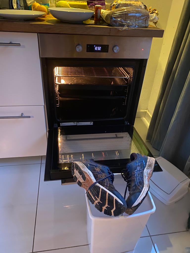 Ja es regnete schon arg, als wir morgens aufgewacht waren, aber so ernst nahmen wir diesen Regenschauer jetzt doch auch wieder nicht. Gemütlich machten wir uns auf zur Schule – wir hatten ja auch gerade mal zwei Minuten – und dementsprechend kamen wir relativ trocken an. Teils unserer Mitschüler waren jedoch klatschnass. Und andere blieben ganz zu Hause. Wenn es in Malta regnet bricht das Verkehrschaos aus. Wirklich. Und dann kommen teils sogar die Lehrer zu spät zum Unterricht. Item. Jedenfalls war es morgens um 09.30 so dunkel wie nachts und schon gingen die ersten Videos virtual… Ein Mitschüler (gelernter Bäcker) von Ela erzählte ihr, als er morgens aufstand und bemerkte, dass die Decke nicht dicht war. Und prompt waren genau an dieser Stelle seine Schuhe! Not macht bekanntlicherweise erfinderisch und da er keine funktionierende Heizung hatte, musste halt der Backofen herhalten. Gelernt ist gelernt. Ela konnte sich fast nicht mehr halten vor Lachen. Liebe Greta-Anhänger, bitte schaut euch die nachfolgenden Bilder nicht an! *riesenfrechgrins* Ja aber noch hatten wir zu lachen. Als wir nach Hause kamen mussten wir jedoch feststellen, dass auch unser Appartement nicht «dicht» war. Zum Glück war jedoch unser Wasserschaden in ein paar Minuten weggewischt.