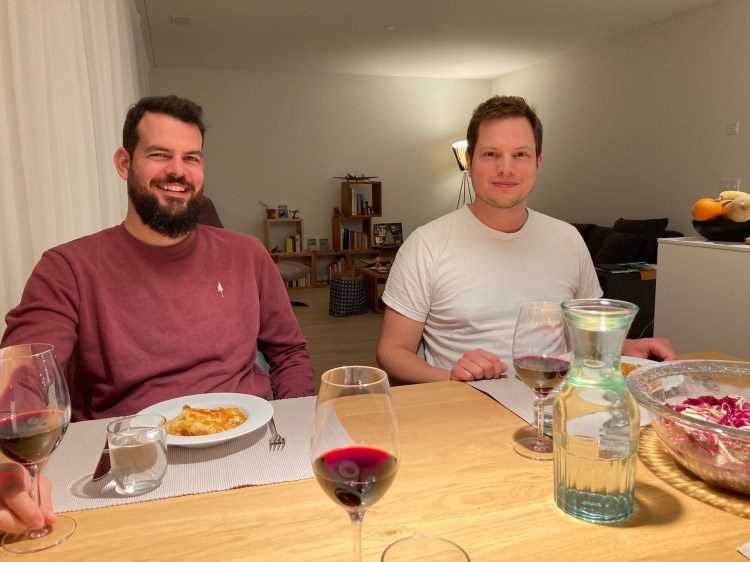 So – wir haben es doch noch geschafft und uns einen Flug gebucht und uns durch den Papier-Dschungel gearbeitet. Huuup-huuuup. Denn schliesslich wollen wir ja jetzt unser frisch aufpoliertes Englisch auch anwenden. «Jingle Bells». Aber zuerst legten wir noch einen Boxenstopp in der Schweiz ein – weil die Verbindungen ab Malta nach Bangkok etwas umständlich ist und wir noch einen super wichtigen Grund hatten, mit Nina und Roger anzustossen. Roger ist endlich auf die Knie gefallen – oder so ähnlich. Jedenfalls mussten wir noch auf die Verlobung der beiden anstossen. Und da Seebi die ehrenvolle Aufgabe hat, Rogers «Best Man» zu sein – liessen wir uns das nicht nehmen. Die beiden beherbergten uns wie immer liebevoll. Einmal alles frisch durchgewaschen, ein paar Habseligkeiten leichter, dafür vollgefressen (an dieser Stelle, Nina ist eine begnadete Köchin und da muss man einfach nach schöpfen) – traten wir den weiten Flug Richtung Thailand an.