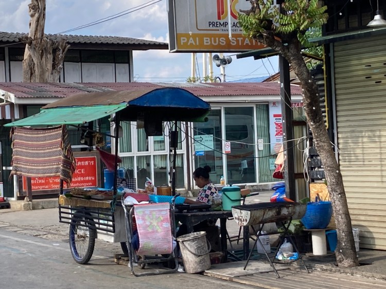 Auf dem 3-stündigen Weg von Chiang Mai nach «Pai» kann es einem bei den 762, meist scharfen Kurven, schon mal übel werden. Zum Glück sind wir nicht anfällig – jedoch war eine andere Passagierin ziemlich am Ende, als wir «endlich» Pai erreichten. Leer und kreideweiss!