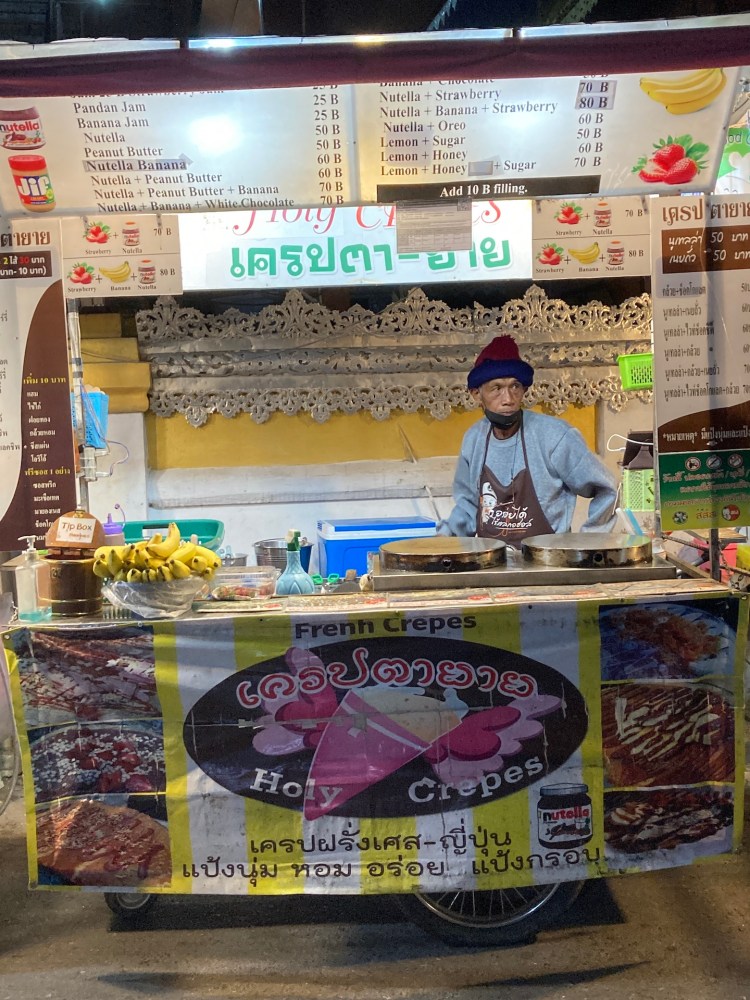Jeden Abend findet auf der «Walking Street» ein Nachtmarkt statt. Ein Schlemmparadis schlechthin mit besonderer Stimmung. Neben ausgefallenen Essensständen wird musiziert, Hannas gemalt oder sonstiges Allerlei wie Wollmützen, gehäkelte Tücher, Kleider, Tee… verkauft. Tagsdurch klapperten wir mit dem Roller ein paar Sehenswürdigkeiten der Region ab. Beim zweiten Versuch klappte es dann auch – denn der erste Roller welcher wir kriegten, «soff» schon nach den ersten Kilometern ab. Zum Glück waren wir noch in Gehdistanz.