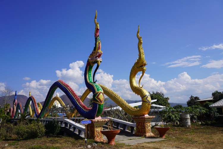 Eines unserer Highlights war der «Pai Canyon». Die schmalen, orangebraunen Pfade mit den steilen Schluchten in Kombination mit dem Panoramablick auf die umliegenden Berge ist wundervoll kitschig. Auf der Erdbeerfarm erwartete uns eine märchenhaft-schnulzige Atmosphäre. Das Relikt des 2. Weltkrieges, die «Memorial-Bridge», vermittelt mit ihren Gebrauchsspuren und dem Eisengestell den Retrolook schlechthin. Die 285 Stufen hoch zum «White Buddha» lohnen sich allemal – denn nicht nur der Ausblick lohnt sich, auch der Weg ist mit liebevollen Strukturen verziert. Natürlich machten wir auch einen kurzen Halt beim Tempel «Mae She Thai Patthana Chit Chaloem Phra Kiait», bevor wir uns beim «I Love U Pai Cafe» stärkten. Bei leckerem gebratenen Reis mit Crevetten und Chicken aus den Hängesesseln mit Blick auf die Berge lässt es sich leben. Nachmittags machten wir noch einen Abstecher zu einem traditionellen chinesischen Dorf mit Lehmhäusern, das «Santichon Village», bevor es dann zurück ins Dorf Pai ging, wo wir uns vor dem leckeren Abendessen selbstverständlich wieder eine Massage gönnten.