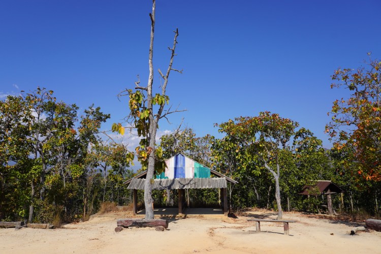 Wir machten uns pünktlich auf zum Busbahnhof – um den Bus zum «Erawan-Nationalpark» zu nehmen. Aber Pustekuchen. Aufgrund der wenigen Touristen fährt nur noch zwei Mal täglich ein Bus. Einer um 06.00 Uhr morgens und der andere um 17.00 Uhr. Ja super. Also hatten wir zwei Möglichkeiten. Entweder nehmen wir den Bus am kommenden Morgen oder wir gönnen uns ein «Pickup-Taxi». Und wer uns kennt weiss, 06.00 Uhr ist halt schon «cheibe» früh. Also schwangen wir unsere «Födlis» auf die Ladefläche vom Pickup – und los ging es.