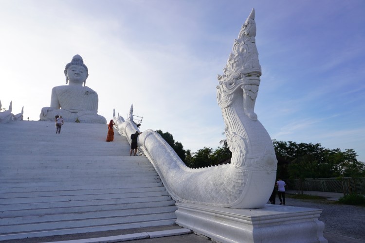 Item. Jedenfalls nach diesem kleinen Abstecher machten wir uns auf zum Big Buddha – dessen Name eigentlich «Phra Puttamingmongkol Akenakkiri» lautet. Ja Big Buddha geht uns auch leichter von den Lippen! *lach* Die 45 Meter hohe imposante Marmorstatue ist das Wahrzeichen von Phuket und wurde auf einem Stück unberührten Regenwald auf dem «Khao Nakkerd-Hügel» erbaut. Nur schon wegen dem Panoramablick auf die Bucht von «Chalong» sowie die Stadt Phuket ist es den Ausflug wert.