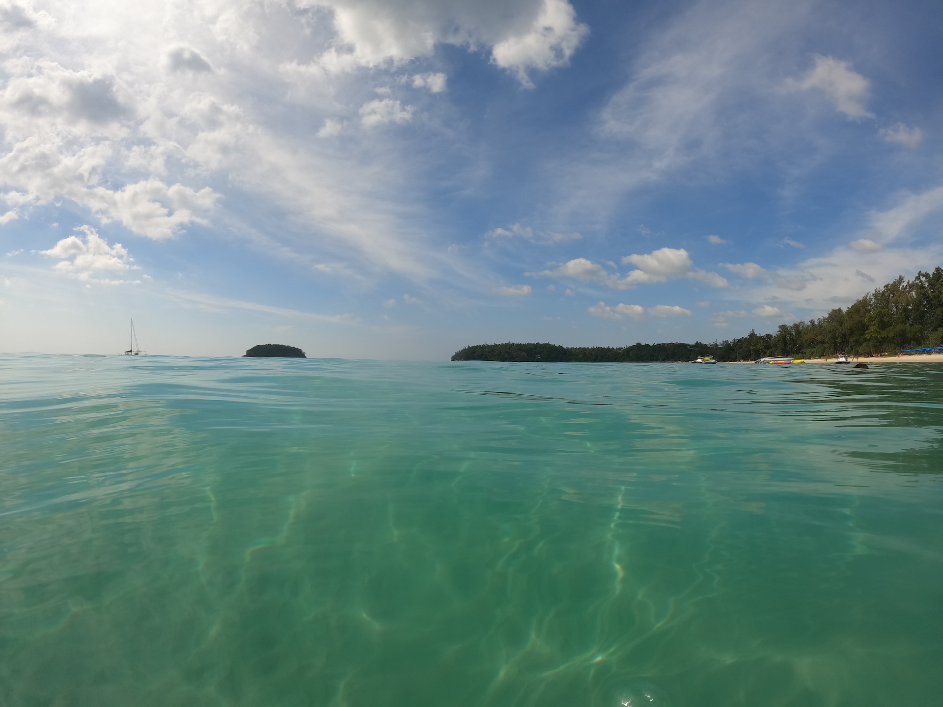 Wenn man an Thailand denkt, spürt man ja innerlich schon die Sonnenstrahlen im Gesicht, den Sand unter den Füssen und das warme Meer – in den schönsten Blautönen. Und das fehlte uns noch. Gefunden haben wir all das am «Kata Beach». Und die Anfahrt mit dem Speedboat war auch dieses Mal gar nicht übel. Den Boots-Wechsel auf offener See war zwar etwas speziell und für uns nicht ganz alltäglich, jedoch mal was anderes.